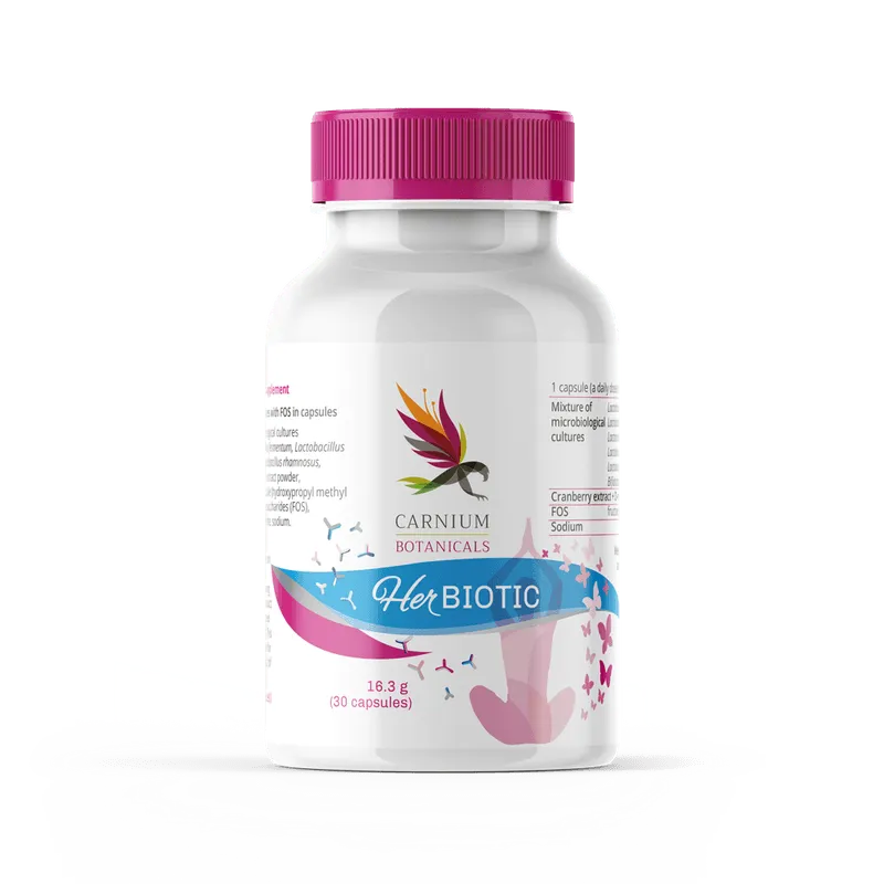 Her Biotic este un amestec unic de șase probiotice, extract de merișor și D-manoză.